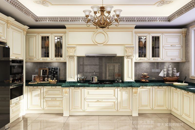 | Q: 이 화려하고 세련된 맞춤형 스테인리스 스틸 주방 캐비닛의 디자인 언어를 독특하게 만드는 것은 무엇입니까? 가장 강력한 단서는 정교한 디테일과 은은한 골드 액센트가 있는 크림색 마감으로, 현대적인 스타일과 함께 세련되고 클래식한 느낌을 제공합니다. 이는 일반적인 캐비닛 목록보다 더 명확한 디자인 관점을 제공하며, 재료 주장을 반복하는 데 그칩니다. |