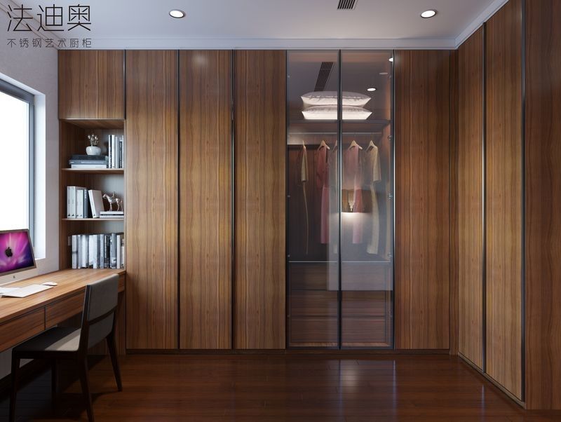 이 맞춤 옷장은 차별화된 마무리 전략을 기반으로 만들어졌습니다. 목재 곡물과 스테인레스 스틸 캐비닛 구조가 결합되어 있습니다.이 조합은 스테인레스 스틸 캐비닛에서 기대되는 청소성과 프로젝트 내구성을 잃지 않고 구매자에게 더 따뜻한 고급스러운 표현을 제공합니다..