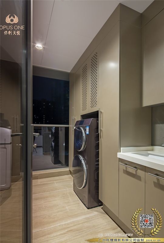| 통합 가전 | 세탁기와 건조기를 수용하도록 설계되어 기능적이고 정리된 공간을 제공합니다. |