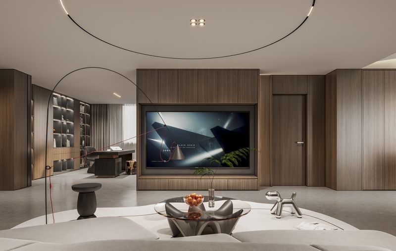 | 천장 설계 | 구부러진 LED 빛 스트립이 장착된 흰색 천장은 현대적인 분위기를 더하고 |