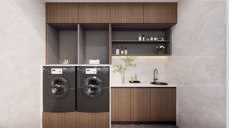 | 디자인 | 통합 세탁기 수납 공간과 추가 수납 공간으로 발코니를 깔끔하게 정리할 수 있습니다. |