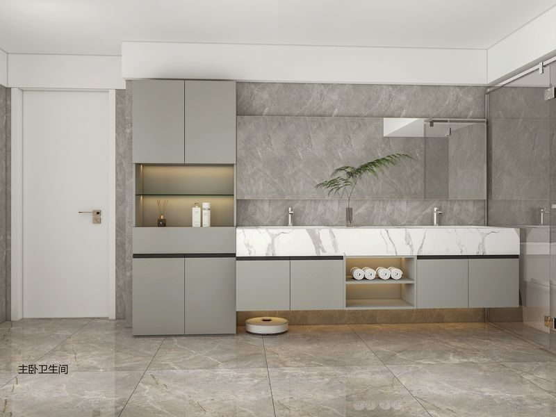 이 화장실 바니티는 일반적인 SKU가 아닌 디자인 중심의 시스템으로 제시됩니다.그것은 프리미엄 주거 프로젝트의 보다 해결 된 시각적 정체성을 만들기 위해 스테인리스 스틸 캐비닛 구조와 함께 회색을 사용합니다.