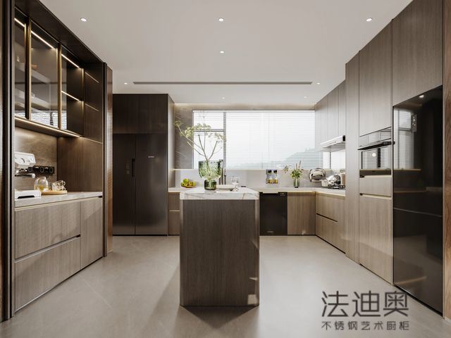 | Q: 이 스테인리스 스틸 아트 주방 캐비닛은 통합 가전제품 또는 디스플레이 기능을 지원합니까? 예. 현재 페이지는 이미 가전제품 통합 및 정리된 수납/디스플레이 계획을 참조하고 있으며, 이는 조달 팀이 디자인 언어가 높은 유닛, 아일랜드 및 기능 구역 전체에 걸쳐 전달될 수 있는지 판단하는 데 도움이 됩니다. |