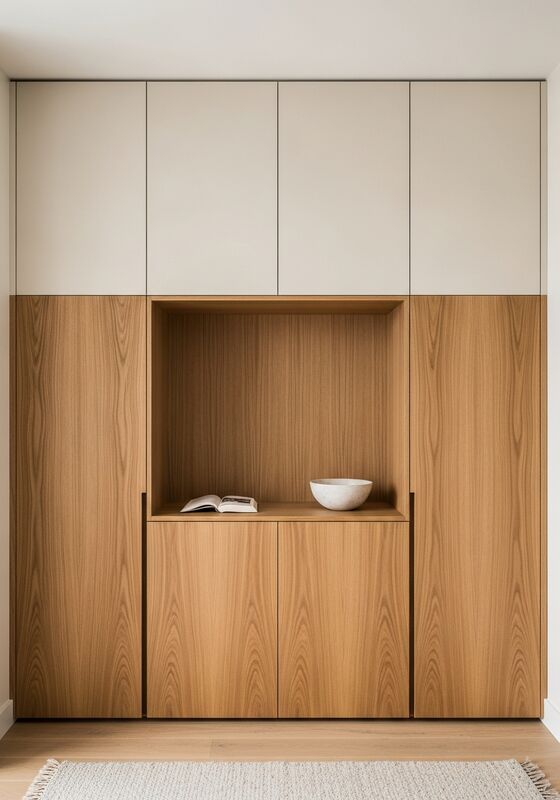 | 재료 및 성능304 식품용 스테인레스 스틸 구조 시스템; 기름진 매트 페니쉬와 함께 천연 일본 오크 포니어; 매트 따뜻한 흰색 라크 패널 (어리 껍질 평면, 종이 같은 표면);어두운 산화제철 엑센트 프레임 습도 저항을 지원, 완결 안정성, 그리고 비주얼 소음없이 조용하고 저장 전 고급을 추구하는 주거 환경에 대한 주요 침실 옷장 시스템에서 장기적인 일상 사용;동쪽 또는 북쪽을 향하는 객실에 적합하며 부드러운 자연 빛이 중요합니다.이것은 목재에 기반한 유지보수 위험 없이 건축적인 외관을 필요로 하는 구매자에게 중요합니다. |